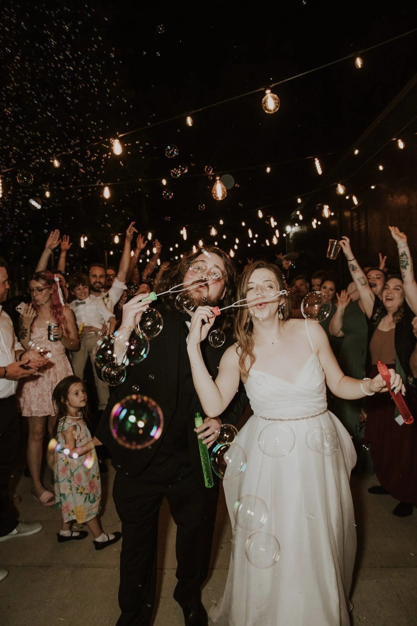 The festivities continued into the night, laughter and music filling the air. But the highlight of the evening awaited them. Under a sky adorned with a full moon, Brianna and Jayson stepped out into a world of whimsy. A cascade of bubbles surrounded them, shimmering and reflecting the moon's radiant glow. Hand in hand, they ventured into a future brimming with endless possibilities, their hearts alight with love and joy.